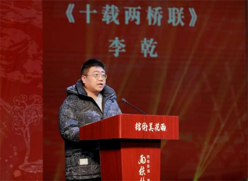 诗歌作品获奖代表朱璟表示,诗歌的创作必须根植于时代的土壤之上,在“两桥”地区,诗歌就跳跃在智慧跑道上年轻人奔跑的跃动中,洋溢在数据线公园里孩童玩耍的欢笑间;在新时代,诗人更应用诗歌语言奏出奋斗的乐章,吹响前进的号角。书法作品获奖代表李乾表示,这次采风和创作是一次从案头到大地的行走,将笔墨赋予了呼吸和生命;书法创作的当代价值之一,正是用千年的线条语言,讲述今天的故事,传播时代的脉搏、建设者的心声。