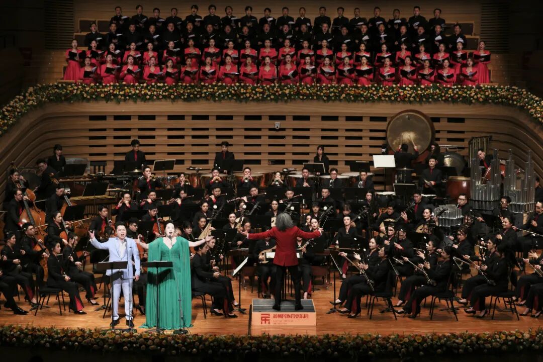 在艺术表现力上,《江河湖海颂》通过多重艺术形式的跨界融合,拓展了民族管弦乐的边界。《春暖江花》将乐队演奏与昆曲吟诵相结合,丝竹乐与昆曲声腔的音色水乳交融,完美呈现出“日出江花红胜火”的诗意;多声筝这一改革性乐器出现在第四乐章《云水流波》中,扩展的音域与丰富的音色变化在炫技性的音乐展开中呈现民间音乐素材的鲜活生命力;第七乐章《海阔天极》则以交响合唱展现大海的浩瀚与包容。这种中西合璧、传统现代交融的理念既保持了传统民乐的韵味,又凸显了交响化的宏伟气势,满足了当代观众对“可听性”与“艺术性”的双重期待。