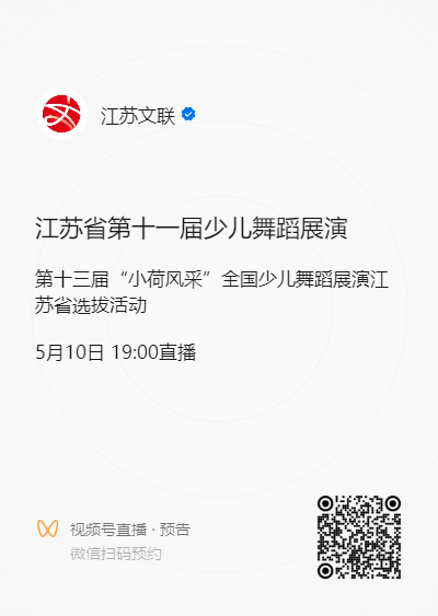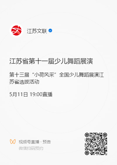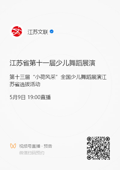 由江苏省文学艺术界联合会、江苏省舞蹈家协会主办的江苏省第十一届少儿舞蹈展演暨第十三届“小荷风采”全国少儿舞蹈展演江苏省选拔活动将于5月9日-11日每睌19:00在南京市工人文化宫工人剧场举办。