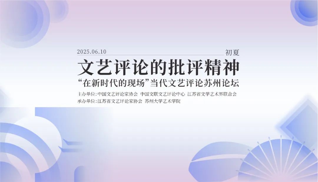 6月10日,由中国文艺评论家协会、中国文联文艺评论中心、江苏省文学艺术界联合会主办,江苏省文艺评论家协会、苏州大学艺术学院等承办的第四届“在新时代的现场”当代文艺评论苏州论坛在苏州举行。本次论坛以“文艺评论的批评精神”为主题,碰撞思维、激发创作,旨在把握文艺规律,弘扬批评精神,褒...